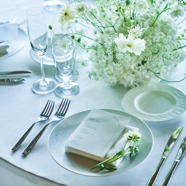 このプランに含まれるもの 挙式料 ○ 料理 ○ 飲み物 ○ ケーキ ○ 控え室料 ○ 席料 ○ 介添料 ○ 美容着付 ○ 新婦衣裳 ○ 新郎衣裳 ○ 引出物 ○ 写真 ○ 印刷物 ○ 装花 ○ 音響・照明 ○ サービス料 ○ その他 ウェルカムドリンク・ゲスト待合室・ブーケ・司会者・オリジナルクロス - プランの特典