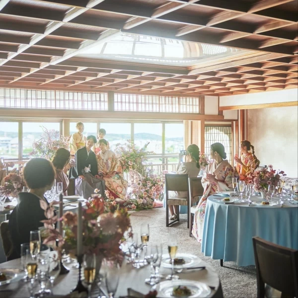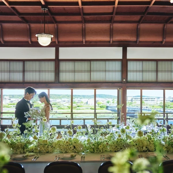 | おすすめ ポイント | 東山に面した3面窓からは大パノラマで鴨川と東山の山並みが一望できる。大正時代から挙式を行っていた歴史もあり木目の造りがあたたかい。深みのある木目とウエディングドレスや白無垢の相性は抜群で写真うつりも◎ |