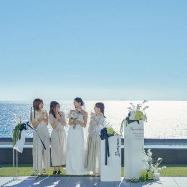 | おすすめ ポイント | 波の音も演出になる白を基調としたパーティー会場。装花もふたりらしいカラ―でコーディネートできます。