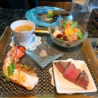 純和風ではなく和洋折衷な雰囲気です。門構えに圧倒されます。披露宴会場は茶色のやや暗めで暖色系の照明です。天井は低く自然光は入りにくいです。披露宴会場の窓から庭園を眺めることができます。医療従事者特典で割引をしていただいたのは非常に助かりました。料理の品数は少ない方だと思います。食材にこだわりがあるとのことですが、少し寂しい印象を受けます。駅から遠いため、車が必須になります。周囲は住宅街で道路が細く、式場までに看板があるものの非常にわかりにくいです。スタッフの皆さんは皆さん明るく丁寧です。決めては会場の建物です。和モダンな雰囲気の会場が本当に素敵です。ブライダルサロンもソファが柔らかく長時間の打ち合わせでも疲れません。大人の隠れ家的な会場なので、シックな結婚式をお望みの方にはいいかもしれません。詳細を見る (351文字)