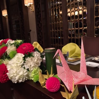 旧家をリフォームした和モダンで、あえて天井は低く、ゲストとの距離感も近く、アットホームかつオシャレな会場。窓と照明と中庭をうまく利用し、昼と夜で違った雰囲気が味わえます。平均的かと思いますが、貸し切れることや和風にこだわるなら、同じ値段で他で挙げるより断然いいと思います。お肉とエビが美味しかった。お箸で食べられます。そしてなんと言ってもスイーツ!試食でも豪華なスイーツをいただいて、感動しました!!住宅地ではありますが、地図通り来れば近くに看板もあるのでたどり着けると思います。若いスタッフさんばかりですが、話しやすく、かつ丁寧に対応してくださいます。私たちは和風にこだわって探していました。旧家を改装していて、一見、和でありながら中庭や内装がモダンな雰囲気が素敵だと思いました!昼から夜にかけて見学し、雰囲気の変わる感じも気に入りました。和風好きにはぜひ!バックに水が流れるチャペルの雰囲気もぜひ味わっていただきたいです。昼と夜、両方行ってみて欲しいです。詳細を見る (430文字)