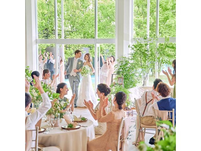 \New!選べる2つのスタイル/天井高8mから降り注ぐ自然光がおふたりを包む”空と森の教会” 緑溢れる空間で過ごす”ガーデン挙式” 青空のもと、祝福の笑顔に包まれるフラワーシャワー体験も可能♪