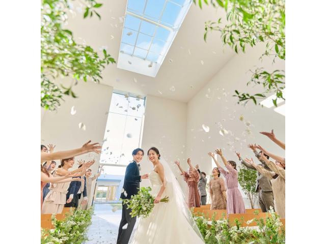\New!選べる2つのスタイル/天井高8mから降り注ぐ自然光がおふたりを包む”緑と光のチャペル” or 緑溢れる貸切空間で”ガーデン挙式” 、青空のもと自然と祝福の笑顔に包まれる非日常の1日を・・♪