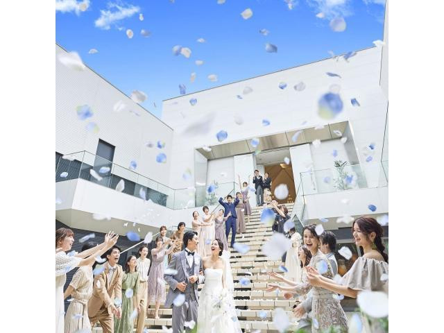 【光輝くチャペルと青空の下でアフターセレモニー】花嫁をより美しく魅せるホワイトチャペルで憧れの入場体験が叶う!卒花イチオシの光るバージンロードは注目!青空貸切セレモニーでは当日の祝福と感動を体感して!