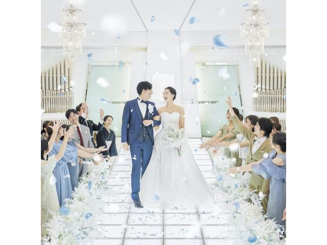 【光輝くチャペルと青空の下でアフターセレモニー】花嫁をより美しく魅せるホワイトチャペルで憧れの入場体験が叶う!卒花イチオシの光るバージンロードにはゲストも嬉しい秘密が!青空貸切セレモニーで憧れを体感!