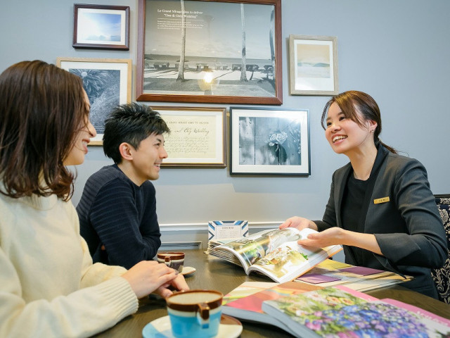 【初めての会場見学にもオススメ】プランナーがお二人のイメージをヒアリングし、お二人のご希望にあった会場をご紹介します!お見積もりや日程のご相談もぜひ◎個室対応。オンライン相談も可能!