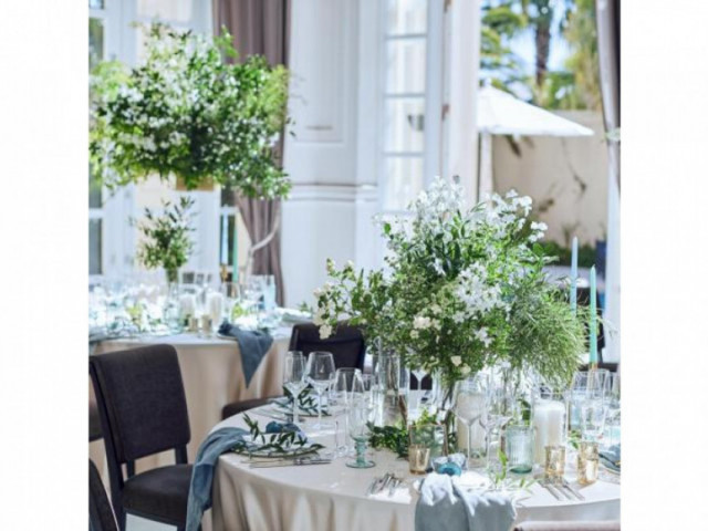 【ゲスト全員の記憶に残る心を尽くしたおもてなし】食事は自然体で楽しんでいただきたいから箸でもお召し上がりいただけるものを。会場装花はフローリストがゼロからデザインした花々が、会場を彩ります。