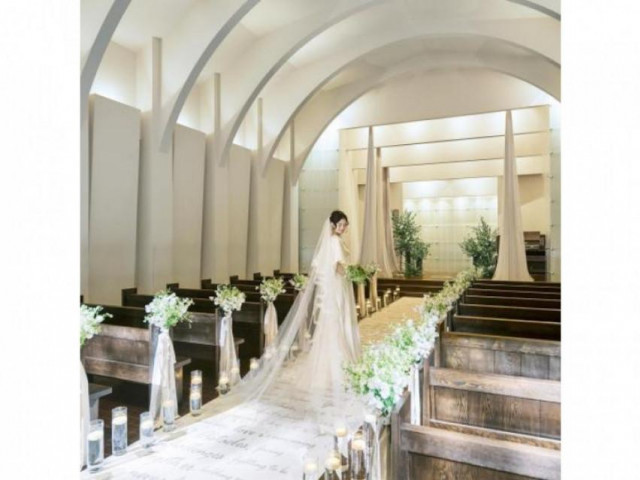 【チャペル・ドゥ・ロザリオ】南仏プロヴァンス地方にあるロザリオ礼拝堂をモチーフにしたチャペルでは入場体験が可能!白を基調とした柔らかな雰囲気がお二人とゲストを包み込みます。