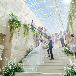 わたしはアンティークが好きでスタンドガラスがなく椅子が茶色で落ち着いてる雰囲気に惹かれたのでルグランミラージュでやりたいと思いました。挙式の時のお花も白、グリーンですがリボンをつけたりとできわたしは普通の物を選んでしまったのですが色々選べるところが良かったと思います!!会場の広さもゲスト62人にはちょうどいい広さでした。ゲストとの距離も近く席はゆったり座ることができたと思います。わたしはやらなかったのですが親への感謝の気持ちを込めたムービーを大画面で流すことができたりと自分のやりたいことや雰囲気がとても好きでした。挙式のやり方も色々あり人前式を選び結婚証明書も好きな物を持っていくことができたのがよかったです。披露宴会場で1番重視したことが階段演出ができること会場が白であることそれからガーデンに出れることでした。高砂も自分の好きなように選ぶことができわたしはソファーにしました。お花も希望通りでとてもよかったと思います。またソファーにしたことでゲストとの距離が近くてゲストの方と一緒に楽しむことができました。会場の雰囲気は色んな会場を見ましたがここが1番よかったです。大きさも良くて本当に良かったです。階段演出をやりたかったわたしは絶対に階段が欲しいなど色んな要望の中1番理想が詰まっていたところでした。会場が白かったためお花がしっかり映えて本当に良かったです。アンティーク系が好きなため会場が白いと色んなお花が置けてよかったです。メインのテーブルのお花色々サービスをしてもらいました料理はほんとにわたしたちがこだわっていたためどこの結婚式場よりも美味しかったです。デザートビッフェはほんとにゲストに好評だした。駐車場がたくさんあるためゲストの方が車で来てもらってもぜんぜん止めれてよかった。無料のシャトルバスも出してもらったのでお酒を飲む方にはシャトルバスを利用してもらうようにした。シャトルバスの利用が少なかったため1台はタクシーチケットと交換した。友人スピーチをやってくれる子は集合時間が早いためタクシーチケットを使いタクシーで来るようにしてもらった。帰りもタクシーで帰ってもらいましたがたくさんタクシーチケットをいただいたため余ってしまうぐらいだった。乗り合わせをしないといけないことがなく駐車場は広くよかったと思う。シャトルバスも浜松駅までだったためその後電車で帰る方が多くて交通のアクセスには困らなかった。毎回打ち合わせも丁寧にしてくださり打ち合わせの時間は毎回楽しいものになりました。いつも笑顔で対応してくれました。デザートビッフェはゲストの方にも好評でほんとにやってよかったと思います。チャペルも披露宴会場もわたしの好みでした!全部がおすすめです。後悔しないように自分のやりたいことをプランナーさんに伝えておくのがいいと思います。今はインスタなどでたくさん写真等が出てくるため写真を見せるのがよかったです。詳細を見る (1215文字)