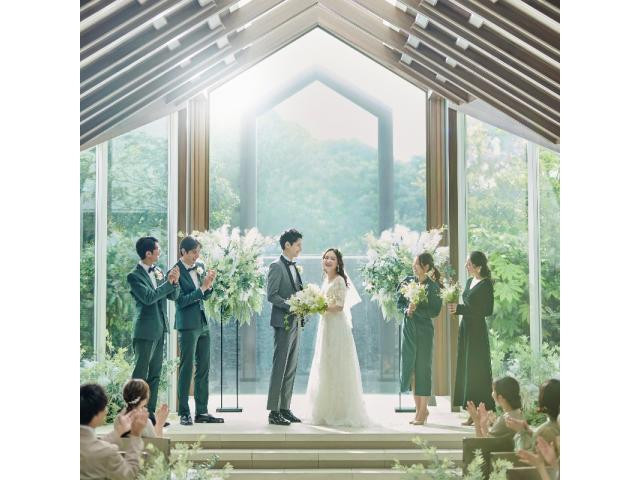 | おすすめ ポイント | ガラス張りのチャペルから見えるのは空と水と緑だけ!大聖堂は20メートルのバージンロード、天井高13メートルに響く聖歌隊の歌声や150年前のアンティークのステンドグラス |