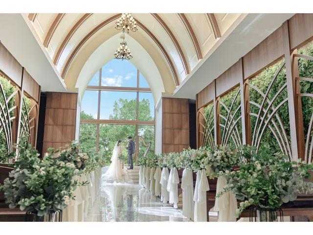 太陽光が大きな窓から降り注ぐ緑あふれるチャペル内で感動の挙式体験を。今ならご来館で5000円分Amazonギフト券プレゼント!地元素材使用の豪華試食も可能な、ゲスト気分で結婚式を体験できるプレミアムフェア。