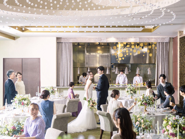 【動画体験可能♪おもてなしにこだわる1組貸切ウェディング】披露宴会場に隣接したオープンキッチンから美味しい香りと出来立ての料理をおもてなし。1組貸切の美食ウェディングを動画や写真でお楽しみください。