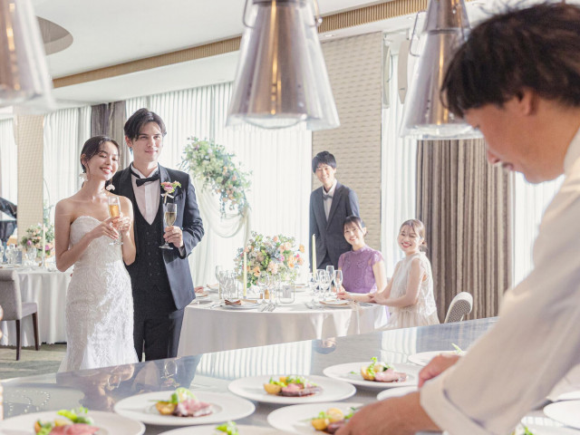 【25年12月リニューアル!15名~OK♪1組貸切パーティ会場】◆陽光注ぐ上質空間×目の前のオープンキッチンから届く美食体験◆挙式前「+30分」のウェルカムパーティで待合から始まるゲストへのおもてなし