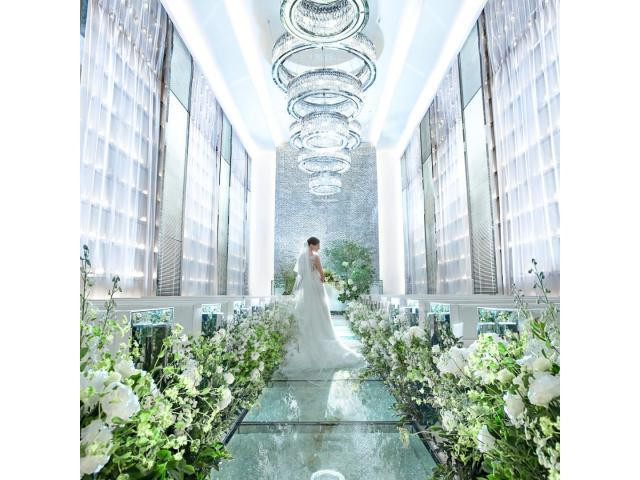 【名古屋で唯一無二のガラスのバージンロード体験】日本の美しいチャペル100選!息をのむほど美しいガラスのバージンロードと壁面の700個のキャンドルの輝きは花嫁の美しさを引き出す。