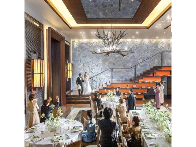 【憧れの階段入場を体験】高さ6mの開放感ある窓からは自然光がたっぷりと差し込み、プール付プライベートテラスではガーデンパーティーも◎憧れの大階段入場はゲストの記憶に残ることでしょう♪