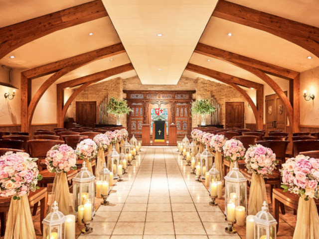 | おすすめ ポイント | アーチを描く木の柱が印象的なチャペル。温かみのあるシックな色調でまとめられ、上品なムード漂うセレモニーを演出。 |