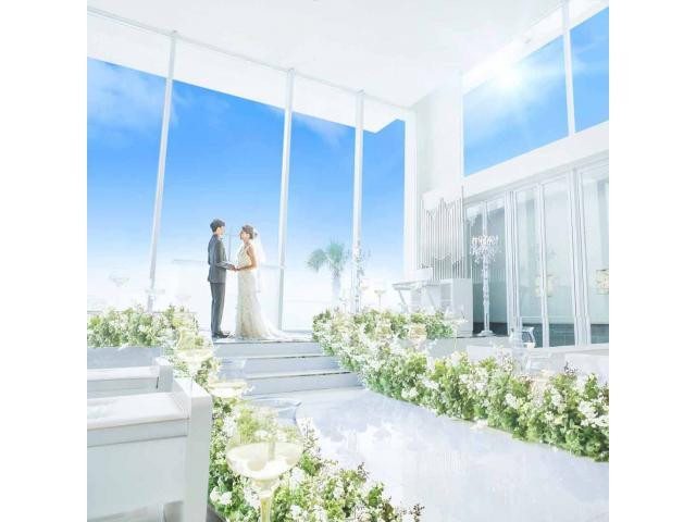 【1件目ご見学限定】海見え憧れチャペル*挙式料20万円優待【全組15大特典】ドレス20万円、お料理20万円、装飾・演出10万円、ビアサーバー無料、送迎(バス2台)など最大120万円優待