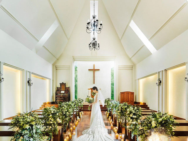おすすめ ポイント | 天然木の温もりを感じられる「木の教会」。天井高10mバージンロード10mの壮大なチャペル。アンティークパイプオルガンと聖歌隊の音色に包まれながら永遠の誓いを |