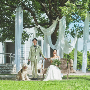 広大な庭。自然に囲まれた中で執り行う温かい挙式。