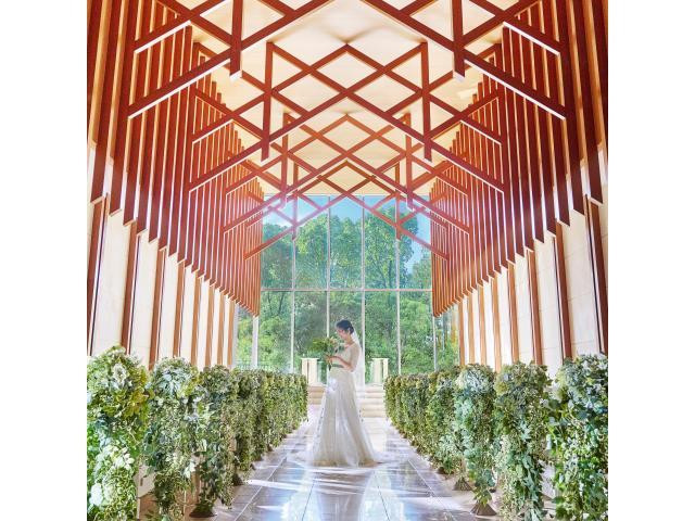 【緑溢れる森の広大なロケーション】緑と光に囲まれた笑顔溢れる感動ウェディング!フルート・サックス・聖歌隊の生演奏とゲスト全員に見守られるチャペルが感動的なセレモニーを演出※最大着席数130名