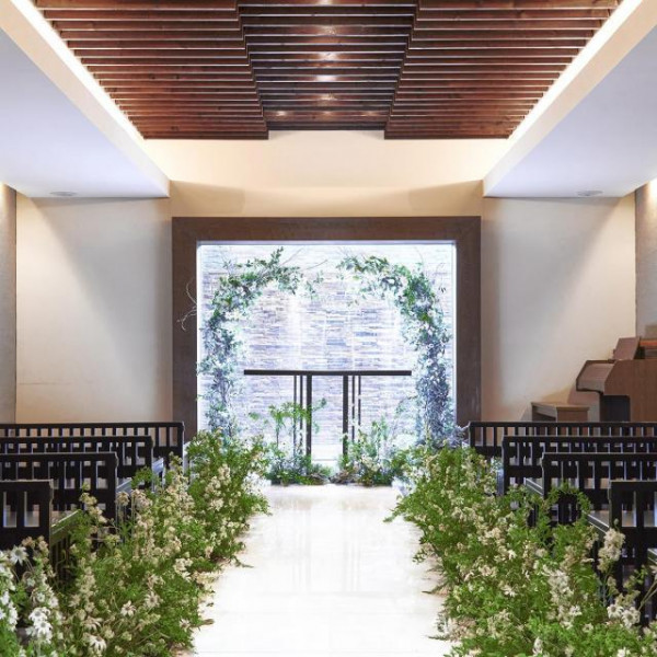 | おすすめ ポイント | 祭壇の正面がガラス張りになっており水の流れる幻想的なチャペル。自然光を多く取り込む明るい室内は木のぬくもりに溢れています |