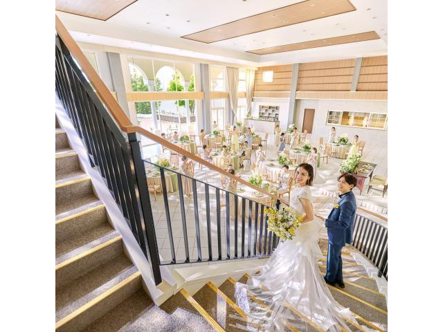| おすすめ ポイント  | 長さ20メートルのバージンロード。地上20メートルの高さから舞い降りる感動的な「天使の羽根」演出は感動的!! |