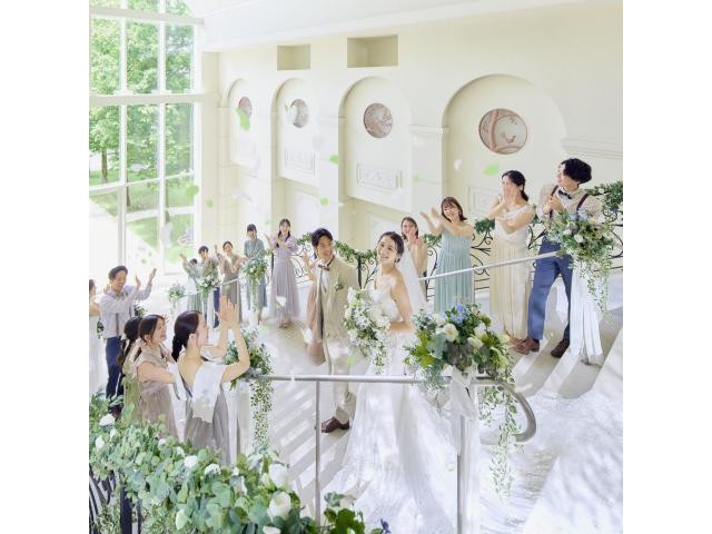 | おすすめ ポイント | 長さ20メートルのバージンロード。地上20メートルの高さから舞い降りる感動的な「天使の羽根」演出は感動的!! |