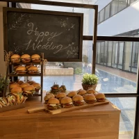 披露宴会場は雰囲気の違ったふたつの会場を見学しました。どちらも共通して料理しているところを間近で見ることができる、また、ガーデンスペースが備わっており緑、自然を感じることができました。「サンジュリアン」は白を基調とした会場で、会場コーディネートによっても雰囲気が変えられるなという印象でした。個人的にはお姫様感もあって好きな会場でした。「ザ・スタイリッシュ・ヴィラ」は木や緑といった自然を感じられるモダンな雰囲気でした。また、どちらの会場も、階段入場ができるところも魅力的でした。また、式が始まるまでの間にウェルカムドリンクやマジシャンなどゲストが楽しめる工夫がされているのも素敵でした。追加の料金はかからないとのことでした。