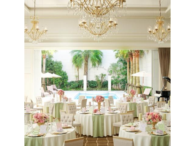 | ガーデン演出 | 有り2つの会場はどちらもプールを配した専用ガーデンがあり、会場とは扉を開け放てばひと続きになり移動もスムーズ。様々な演出がここでなら叶います。 |