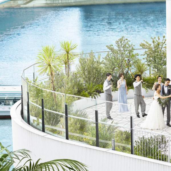| ガーデン演出 | 有りデザートブッフェも可能。横浜の爽やかな風を感じながら開放的な空気の中で盛り上がれる |