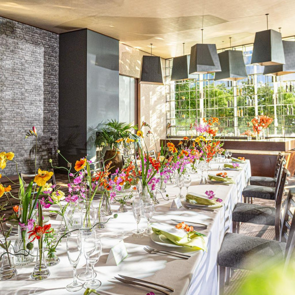 | ガーデン演出 | 有りデザートブッフェも可能。横浜の爽やかな風を感じながら開放的な空気の中で盛り上がれる |