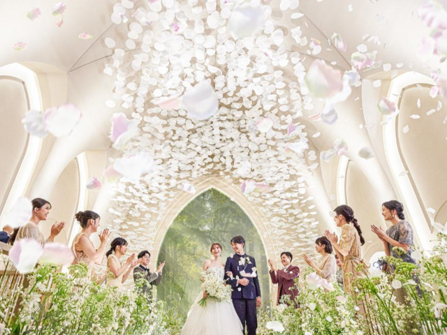 | おすすめ ポイント | 25年夏・自然美と光が織りなす洗練されたチャペル誕生。扉を開いた瞬間に目を奪われる幾重もの花びらのオブジェが祭壇とバージンロードを彩る緑と調和し、花嫁をより一層美しく惹き立てます |