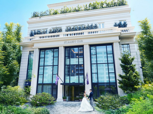 セントジェームスクラブ迎賓館は、おふたりの特別な日を創るための空間で満たされている。各フロアごと“貸切のパーティが叶う”4会場のほか、インポートドレスやフラワーなど最先端のウェディングアイテムが揃う。