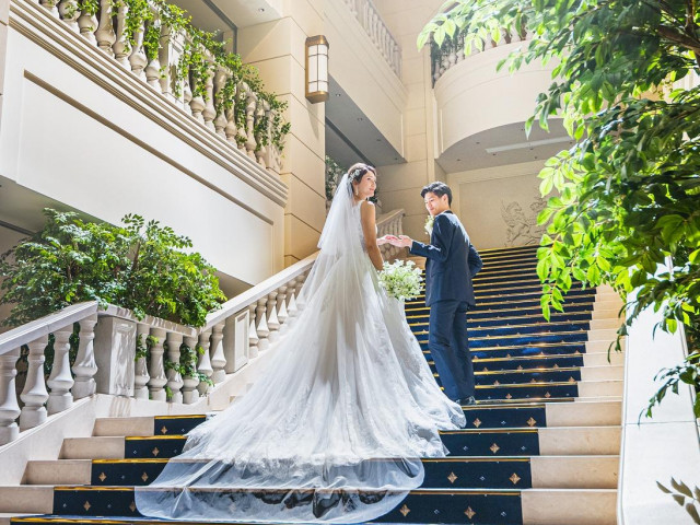 駅徒歩圏の好立地のためゲストが気にする会場移動や宿泊も負担がかからず安心。全天候型ガーデンがあるため季節や天候を気にせず希望の演出が叶う。駅近とは思えないほど豊かな緑を感じるおふたりらしい1日が叶う。