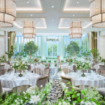 【駅徒歩圏で叶える迎賓館特別プラン】壁面に緑と陽光が差し込む専用会場は、家族や親しい友人と過ごすパーティにおすすめ。仙台駅すぐの好立地にも拘わらず贅沢な空間をご案内。和やかに過ごせる空間で美食を愉しむ特別ウェディングを。