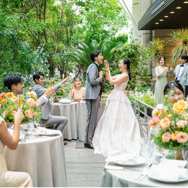 憧れのドレスやお色直しドレス/ゲストに嬉しいドリンクグレードUP/写真など、お得に理想を叶えられる少~中人数プラン。都心にいながら緑の中で寛げるテラスなど、招くだけでゲストの心に刻まれる工夫が凝縮。
