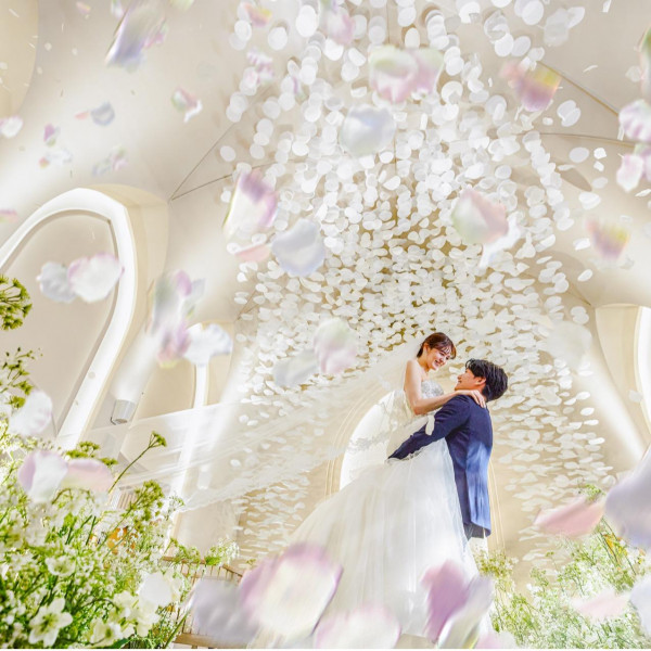 | おすすめ ポイント | 25年夏・自然美と光が織りなす洗練されたチャペル誕生。扉を開いた瞬間に目を奪われる幾重もの花びらのオブジェが祭壇とバージンロードを彩る緑と調和し、花嫁をより一層美しく惹き立てます |