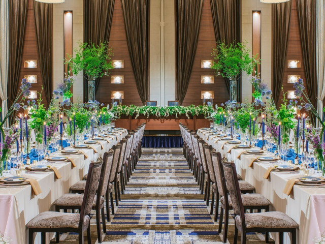 「天井高6.5m」の開放感溢れる披露宴会場。「地上100~110m」の高層階バンケット。「少人数専用」会場も完備!上質感溢れる披露宴会場を堪能してみて。