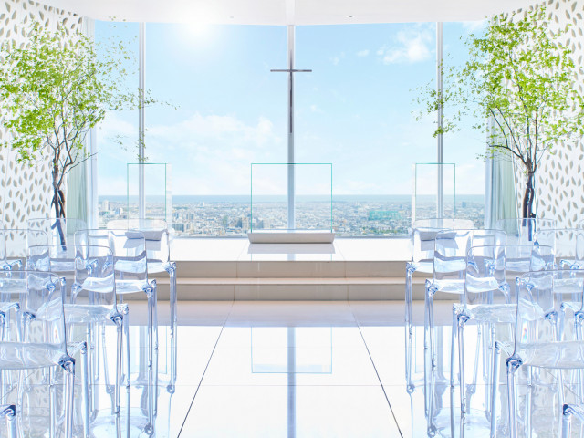 地上110mを誇るスカイチャペル、シンプルで上質なチャペルの「2つのチャペル」を選べる!おふたりに合ったチャペルを是非フェアで体感して!