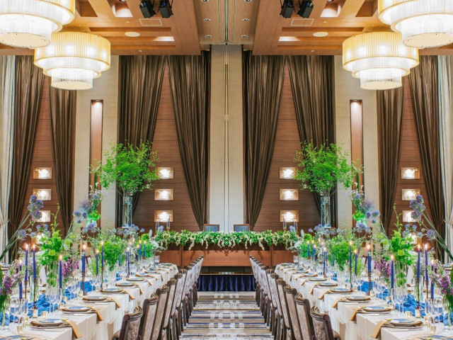 「天井高6.5m」の開放感溢れる披露宴会場。「地上100~110m」の高層階バンケット。「少人数専用」会場も完備!上質感溢れる披露宴会場を堪能してみて。