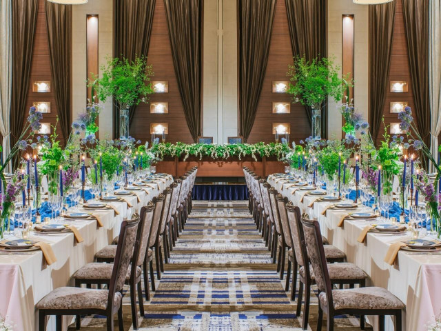 「天井高6.5m」の開放感溢れる披露宴会場。「地上100~110m」の高層階バンケット。「少人数専用」会場も完備!上質感溢れる披露宴会場を堪能してみて。