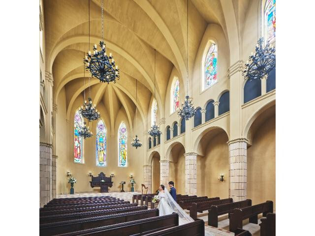 【選べる2つの挙式会場】■熊本最大級の本格大聖堂☆ステンドグラスの輝き・ハープの音色・自然光が入る大扉からの入場は感動の挙式に■縁結びで有名な出雲大社ゆかりの神殿☆夫婦滝が見え雅楽の生演奏が響く和婚も