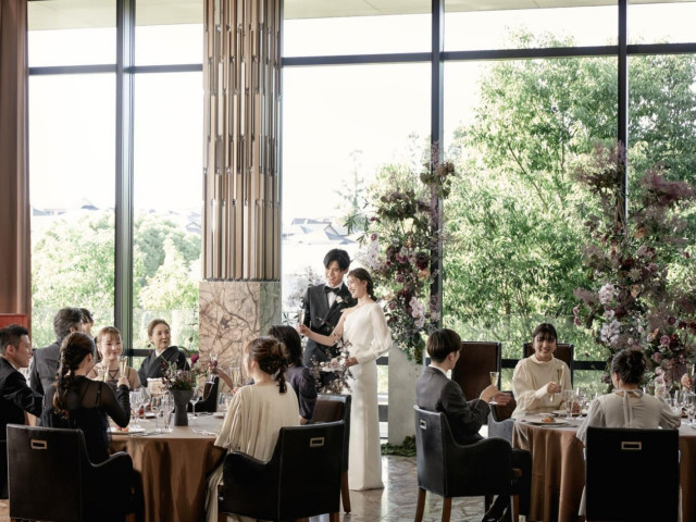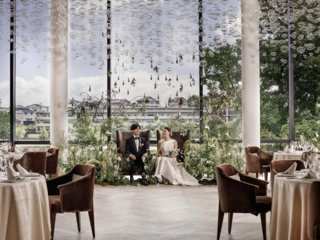 【バリエーション豊富な会場コーディネート】ゲストがお座りになられた時の広さ、カーテンオープン時の景色など ご来館いただくからこそわかる雰囲気をご案内いたします。本番前の会場コーディネートをご覧ください