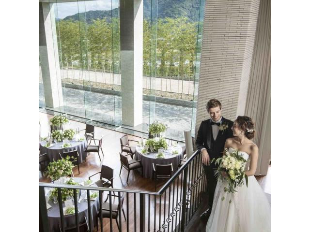 【目の前に広がる四季折々の大自然】カーテンが開くと自然光溢が差し込み新郎新婦様はより一層輝くことが出来る☆