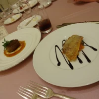大階段がある会場でした。天井が高く、150人ほど入れます。ただ、テーブル間は少し狭く、花嫁さんのドレスがボリューミーだったので歩くのが大変そうでした。庭に繋がる窓があり、再入場の時はそこから入ってきてサプライズ感がありました。