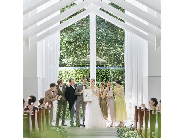 【天井高10M!独立型チャペル】一目惚れするカップルも多い《陽光が降り注ぐ白亜のチャペル》で入場体験を◆ゲストとの距離感を近くに感じられる空間だから、アットホームな挙式が叶う