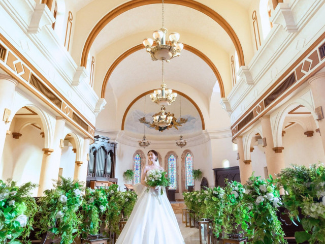 【木漏れ日&ステンドグラスが人気の本格大聖堂×チャペルガーデンリニューアル】ホテルとは別館にある天井高12mの圧巻大聖堂。バイオリン・オルガン・シンガーの生演奏による感動挙式は必見!《最大150名》