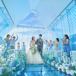 おすすめ ポイント | チャペルに配置された水盤が自然の光を反射させ、キラキラと揺らめく模様を生み出し、せせらぐ滝の水しぶきが造り出す影と重なり合い美しいステージを演出 |