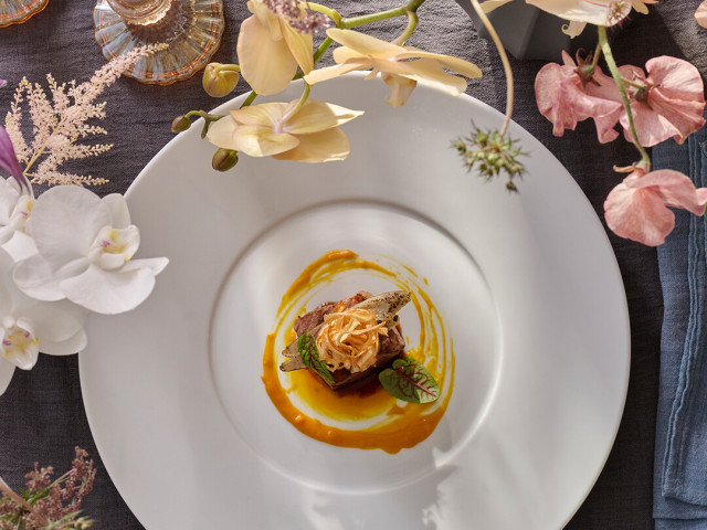 《クチコミ話題★豪華コースを無料試食》お箸で食べられる「素材そのものを味わっていただく新しい婚礼料理」スペシャリテの熊本産!黒毛和牛ロース肉のポワレなど♪いままでの婚礼料理の概念をはるかに覆す料理