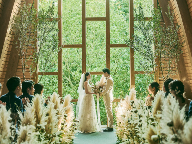 【選べる2つのチャペル】『天空の大聖堂』170名収容の圧巻のスケール!アンティーク調度品が並ぶ熊本では希少な本格ゴシック様式|高台に佇む『森のチャペル』贅沢な純粋木造建築で光と森に包まれた温かなセレモニー